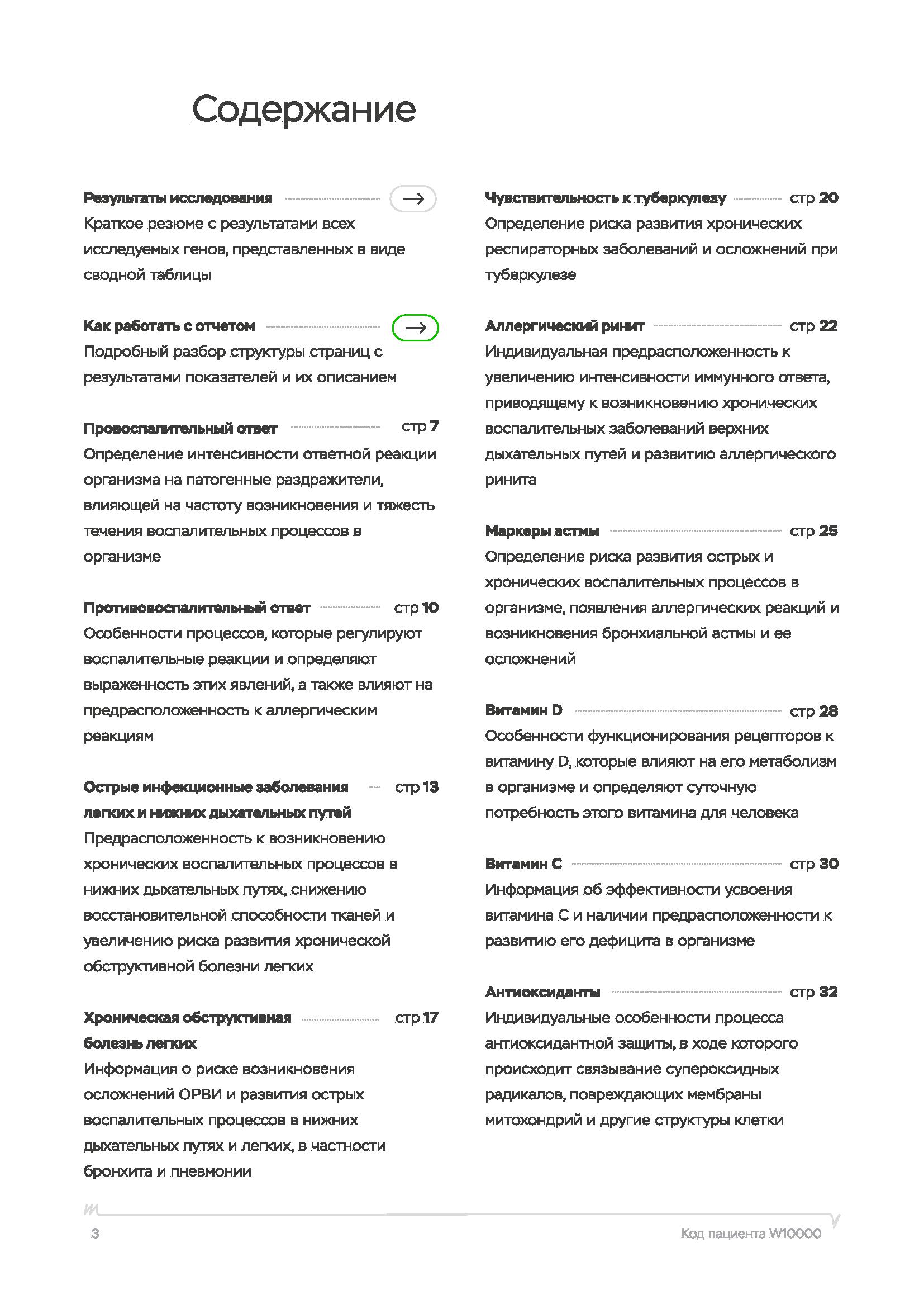 Исследование включает в себя 12 генов, отвечающих за противовирусный и противобактериальный ответ организма. Посмотреть гены и за что они отвечают можно в образце отчета.